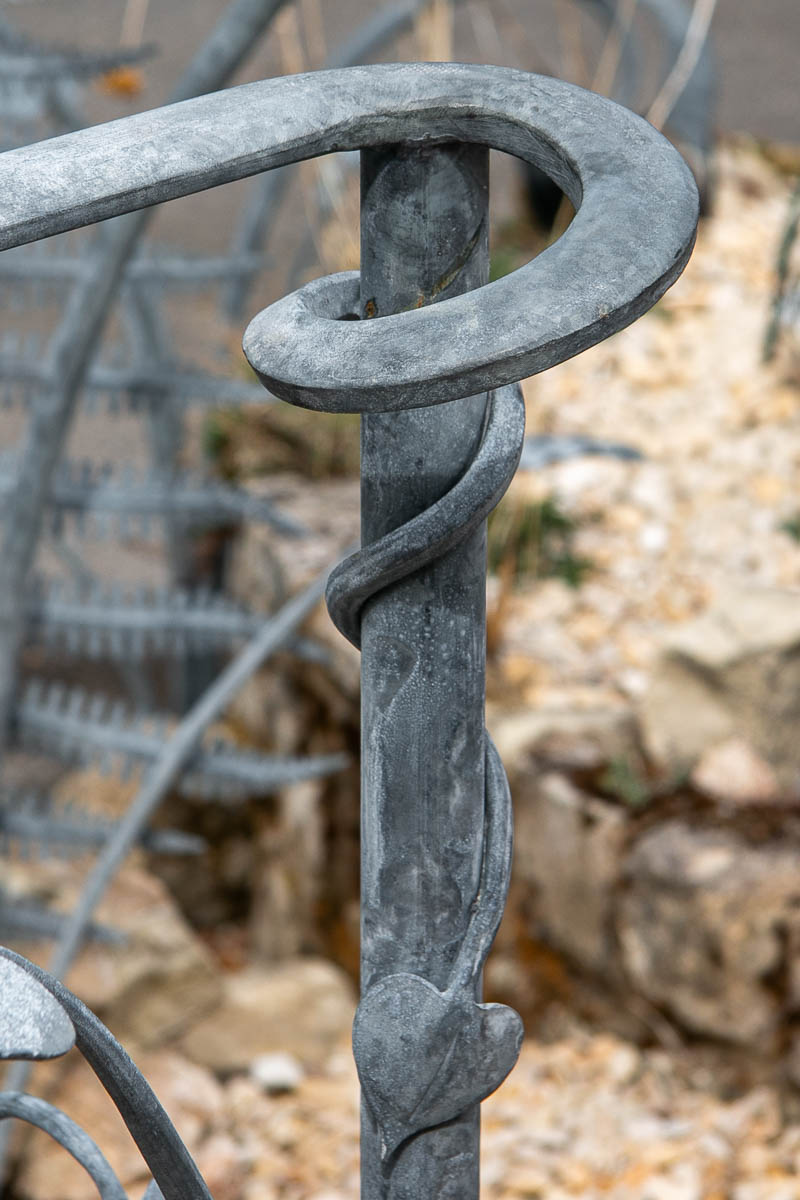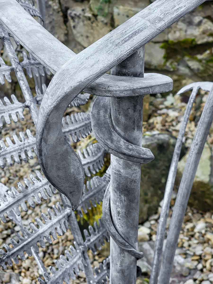 Clusters of hand forged ferns and stylised leaves support the handrail lending it a delicate, elegant and sculptural appearance.