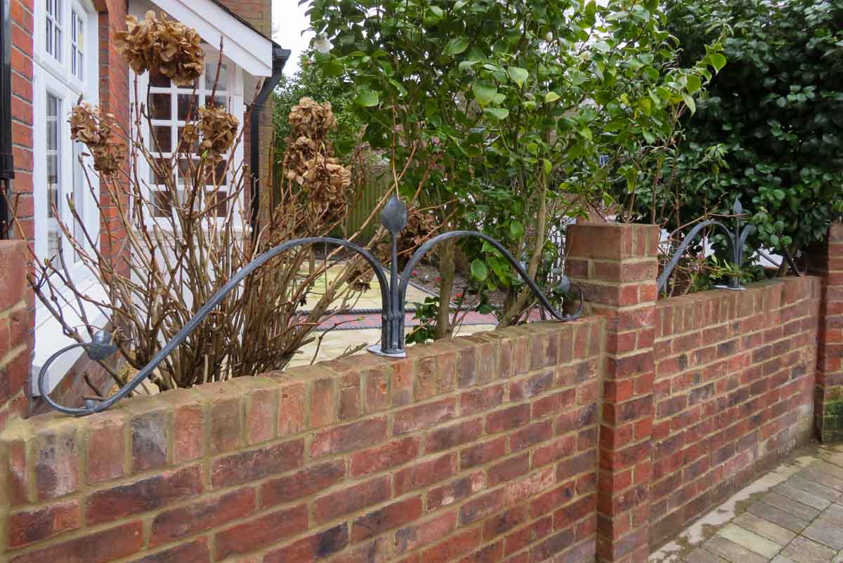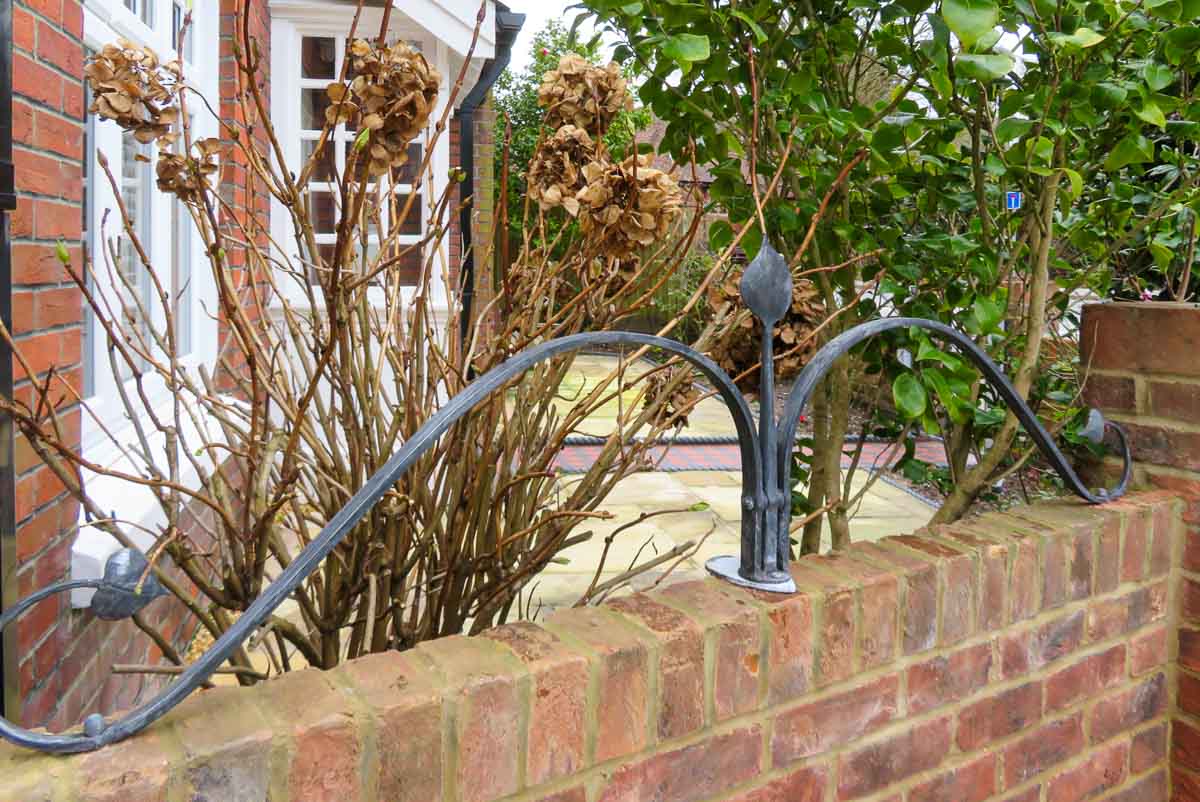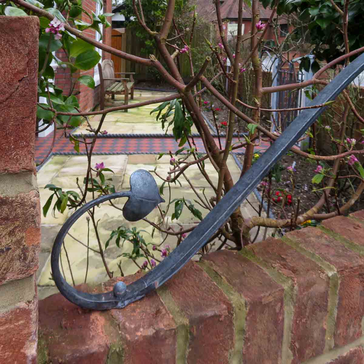 Although these railings have a relatively simple and understated design, they are still very detailed and convey a sense of movement and flow. The detailing includes the hand forged leaves, elegant tapers and ball nut fixings. The railings have an aged and weathered galvanised steel finish. |