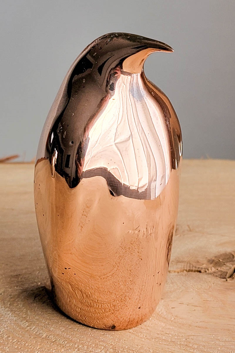 The bronze emperor penguin has a specially developed patina, whilst his highly polished guard is sculpted from various alloys of bronze and copper.