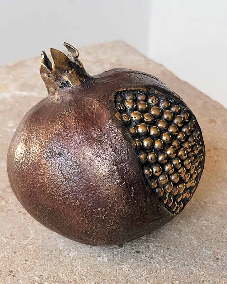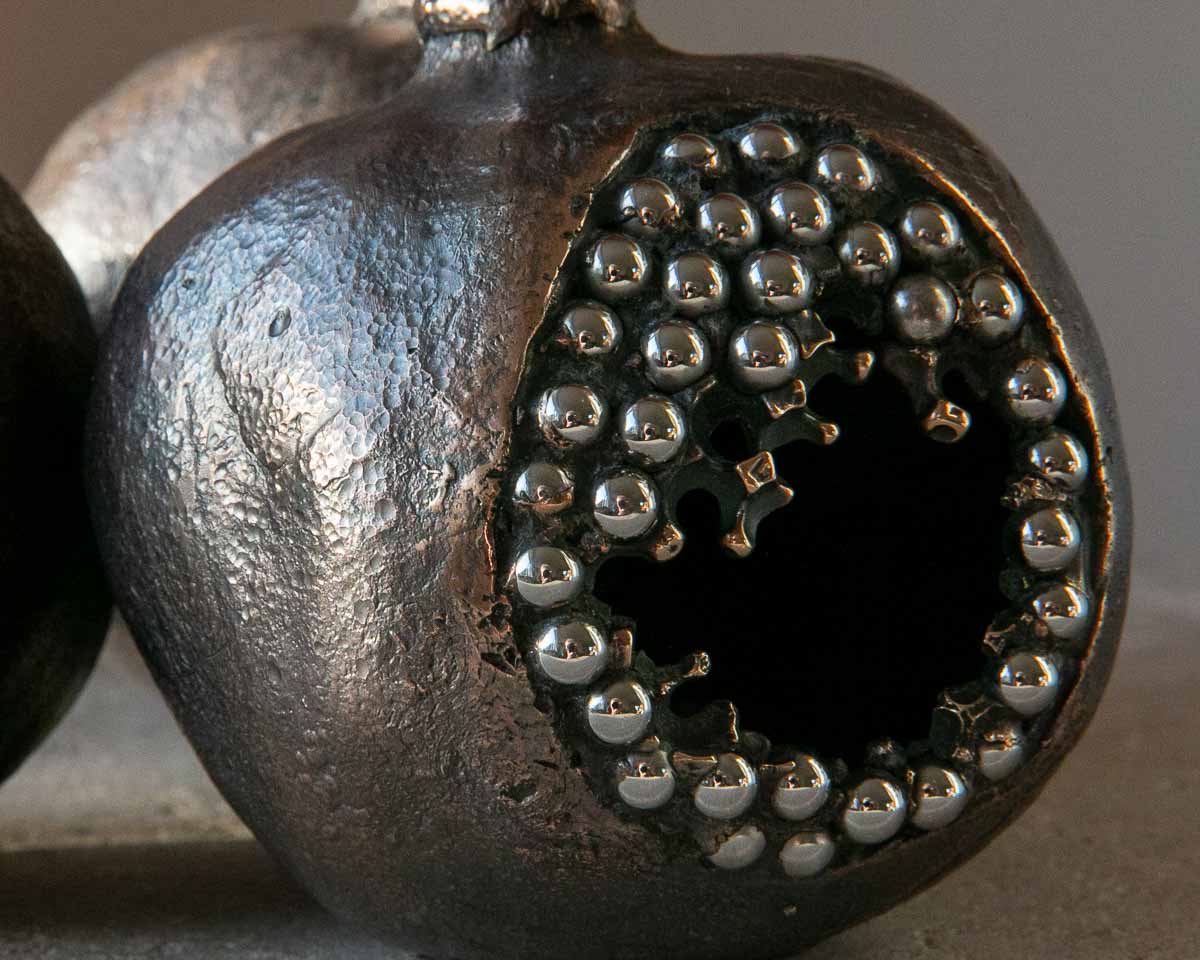 David uses a proprietary version of traditional cire perdue (lost wax) to cast life-like bronze pomegranates.