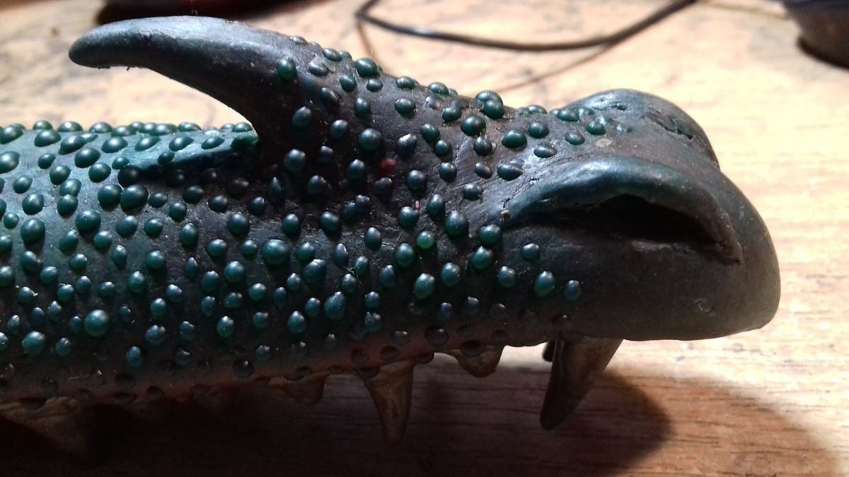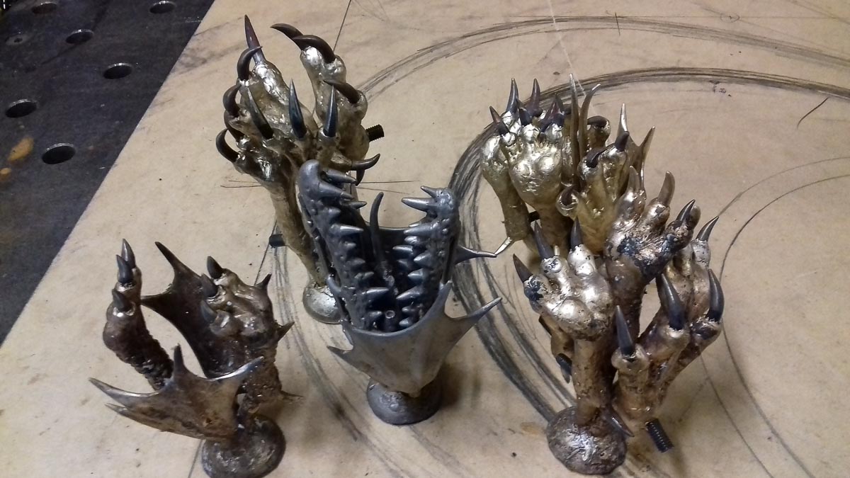 I'm now making them with an open mouth with the nozzle nearer the base of the tongue, their flames look a bit more connected to the dragons. Doing so meant I had to find a way to make realistic metal teeth. A gummy old dragon just wouldn't pass muster now would it! Whilst I was at it I also worked up some new style feet and other bits and pieces and whisked up a few more faces.