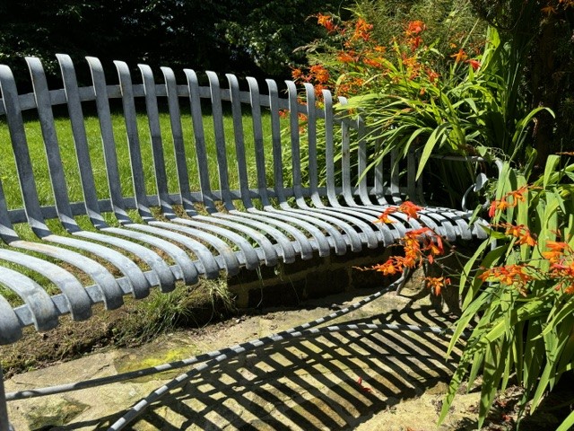 The steel sections chosen to build the bench lend it a lithe and graceful look that belies its strength. Aspects of the design that could affect the comfort include the angle of the back,