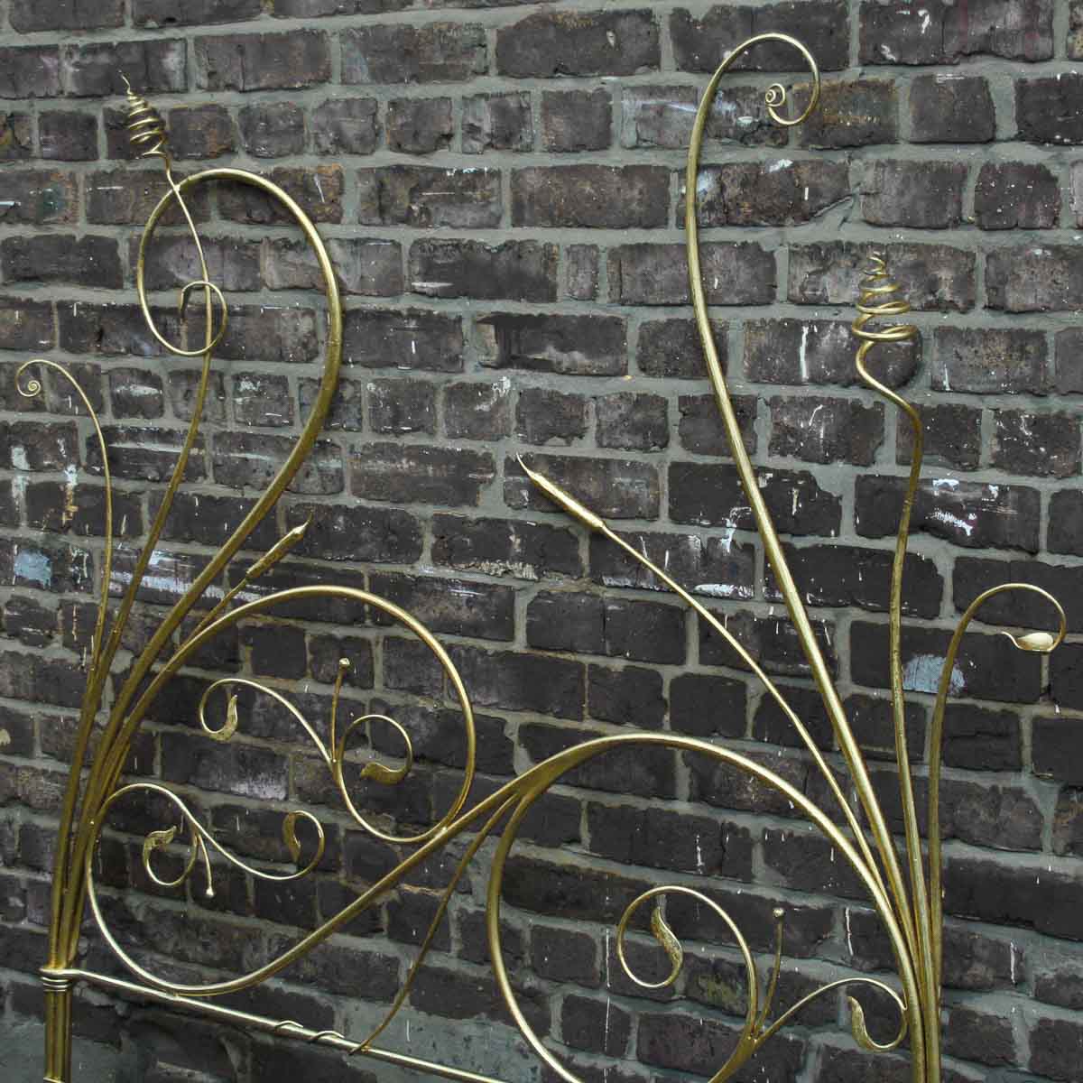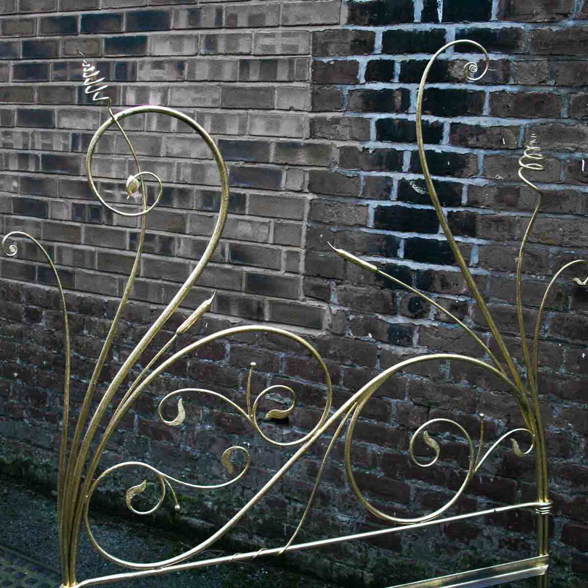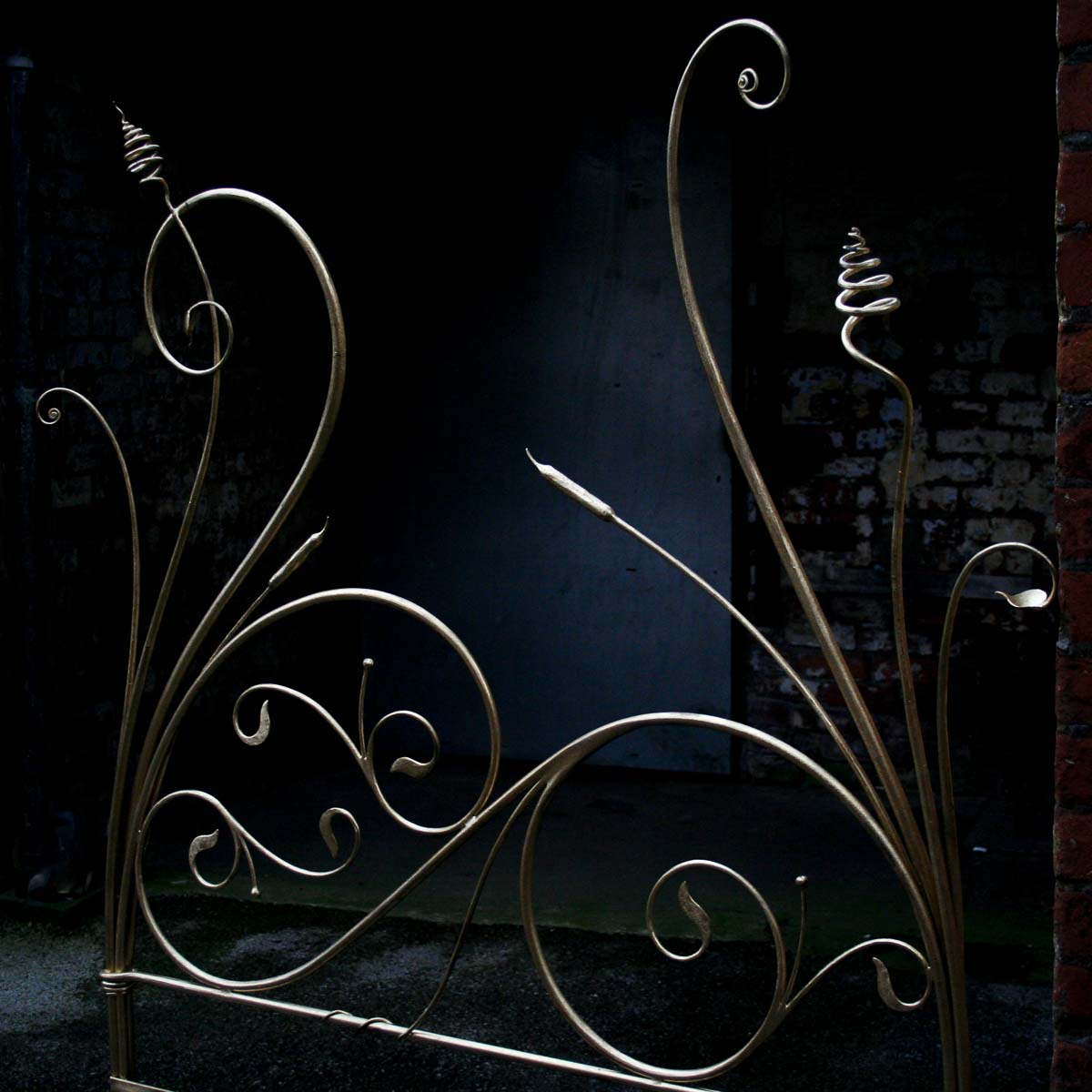 This bespoke and dramatic metal headboard blends sweeping and flowing curves with