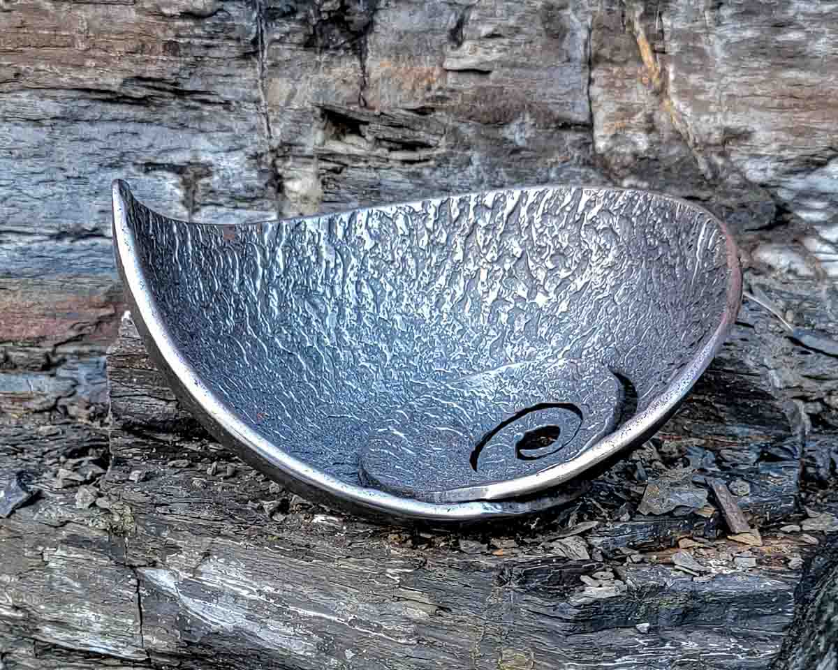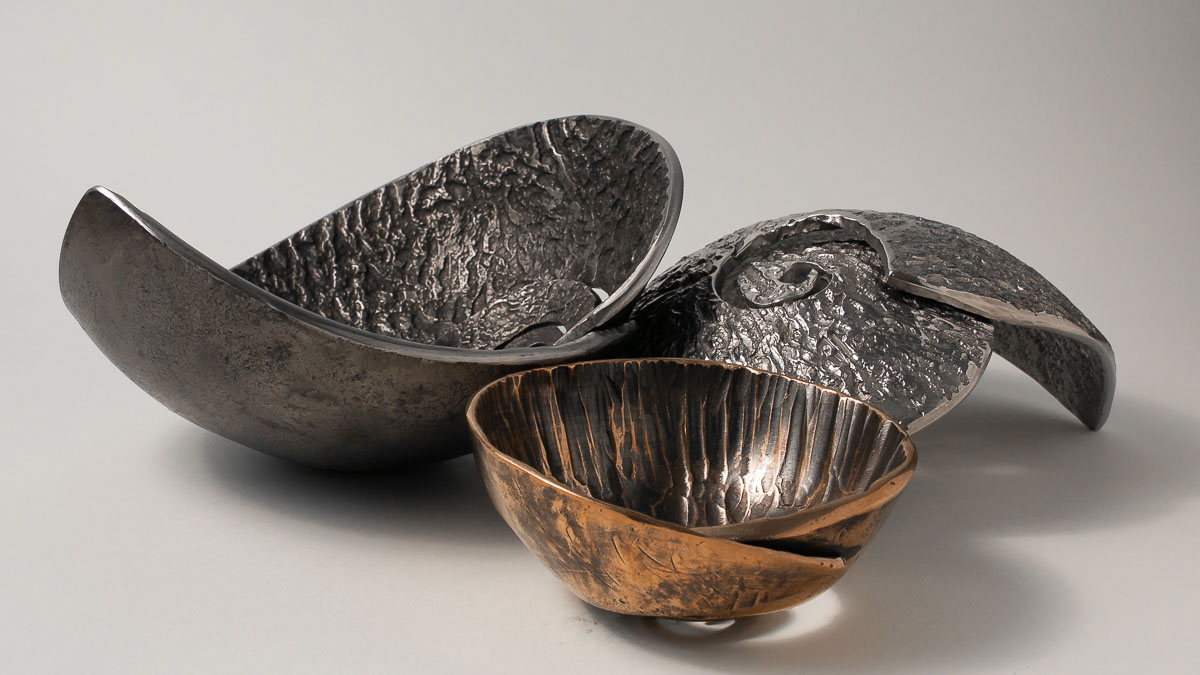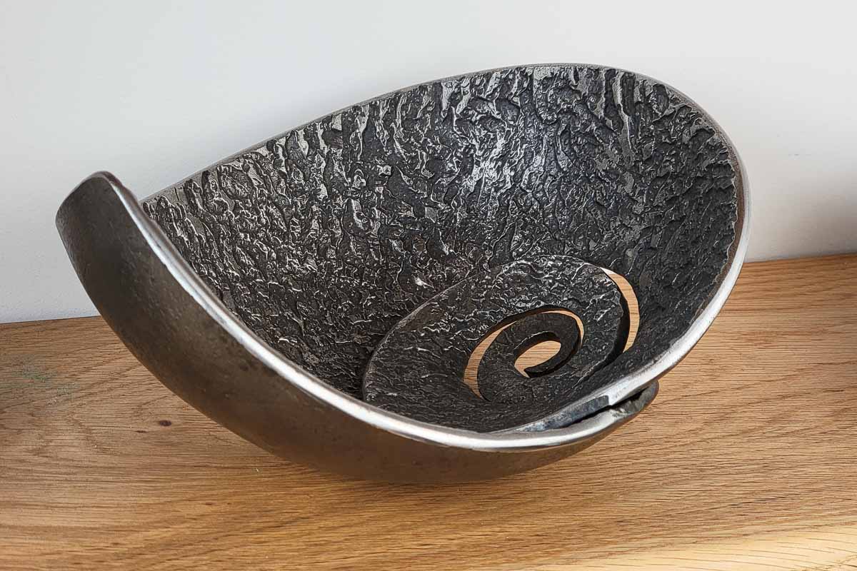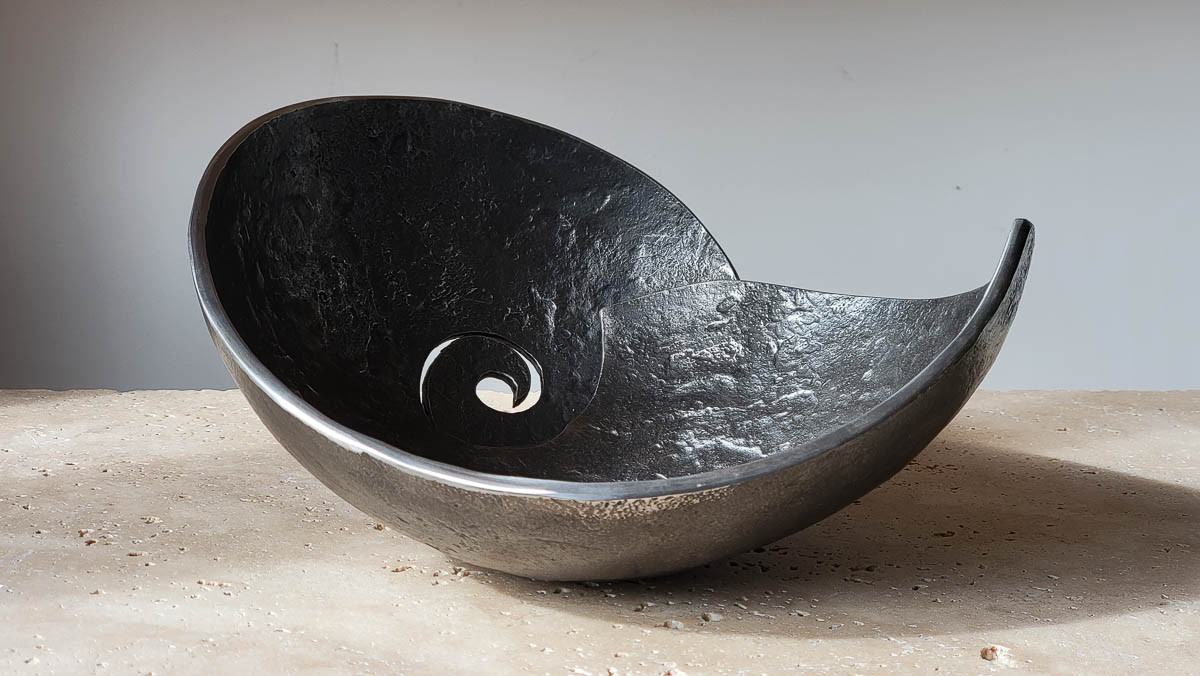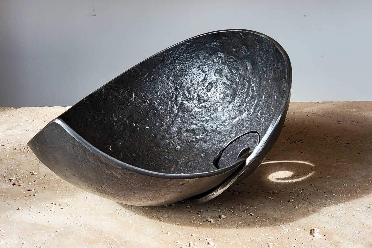 This collection of iron bowls was inspired by the unique geology of Dorset's Jurassic coast, a world heritage site renowned for its spectacular rock formations and abundance of fossils.