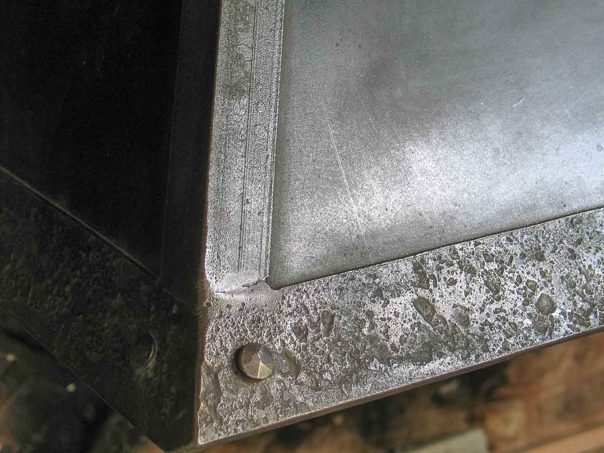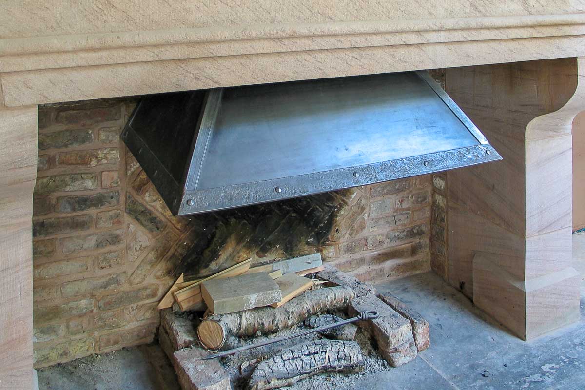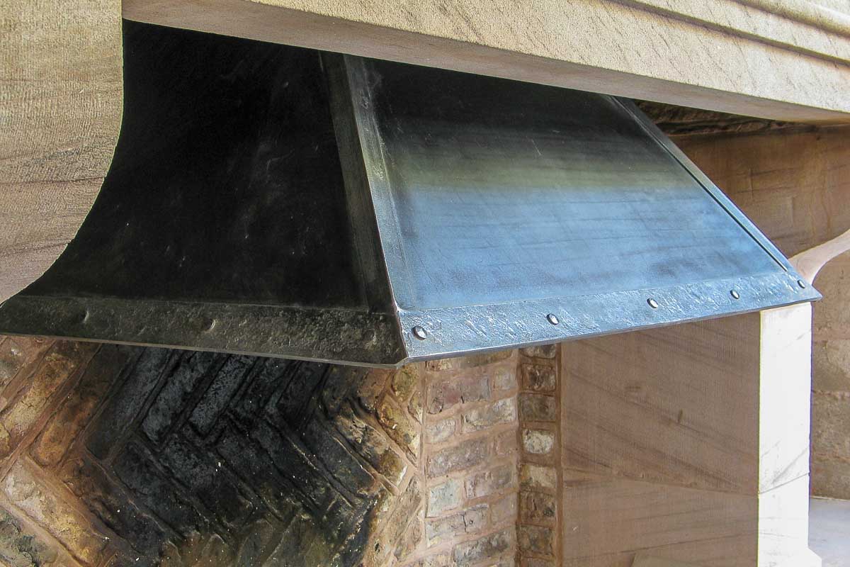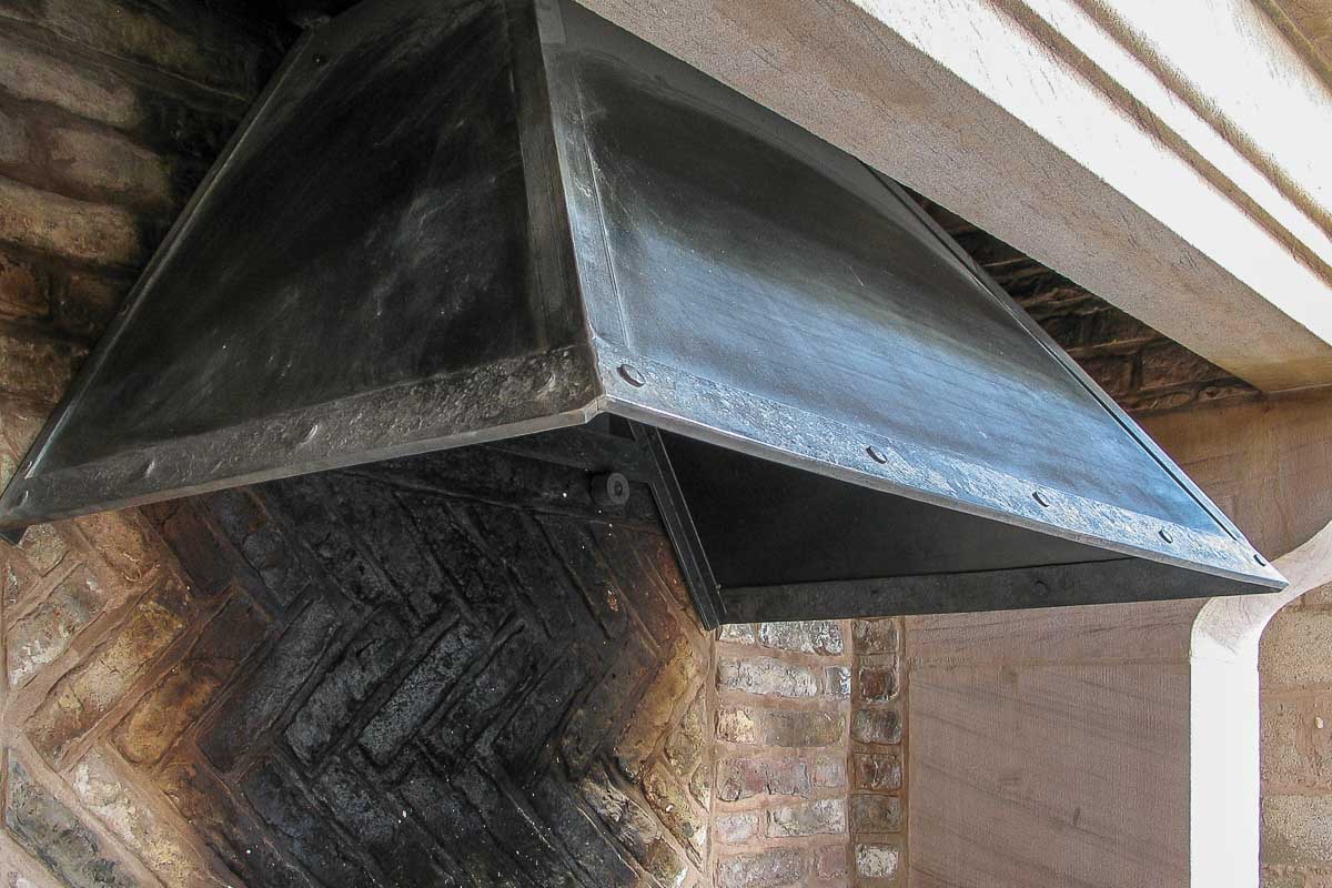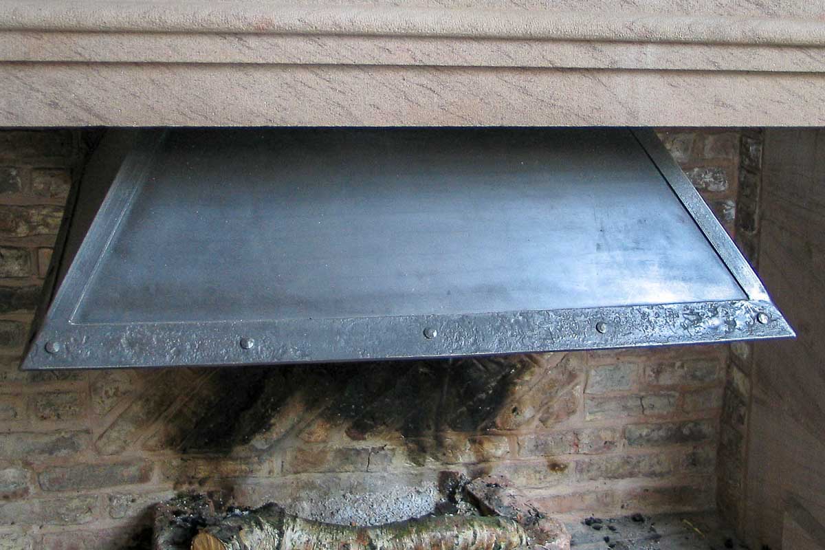 canopy was commissioned for a traditional fire hearth. It was designed as a pleasing blend of smooth sheet steel and heavily textured