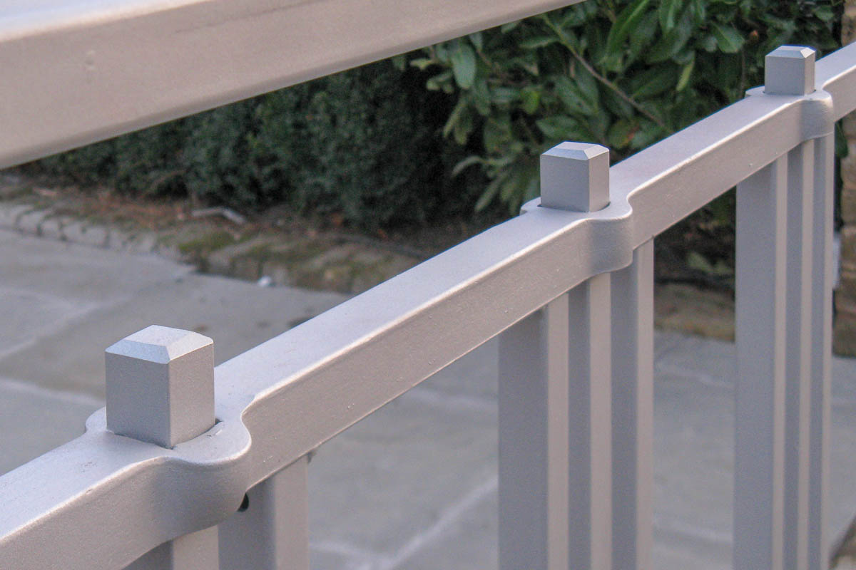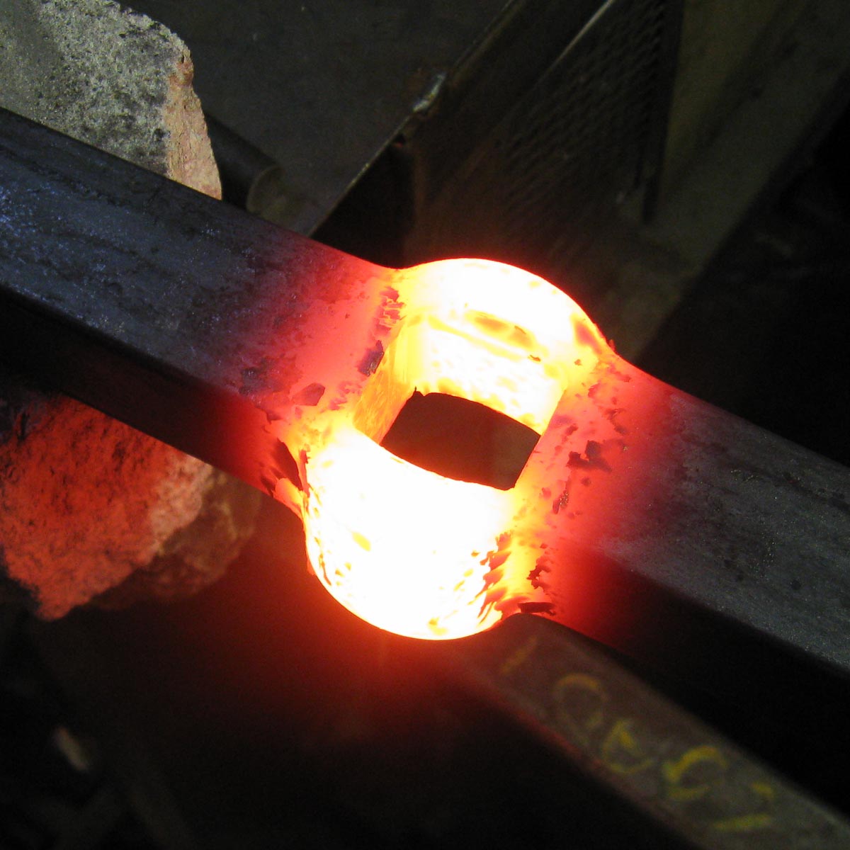 A subtle feature of the railings is the hot punched holes that the uprights pass through. This detailing was made by forcing a hardened punch through the steel whilst hot. The metal