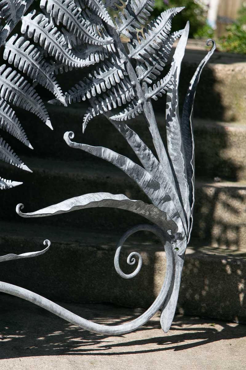 The design is a creative blend of lady fern fronds, Hart's tongue fern leaves and fiddleheads, each strategically placed to maintain strength where needed.