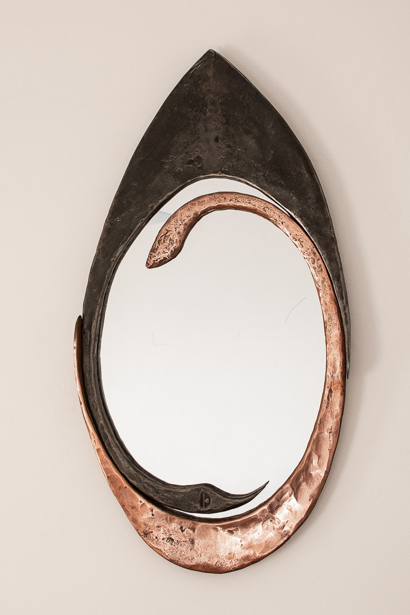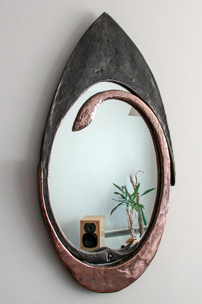 This bespoke and unusual mirror is made by forging