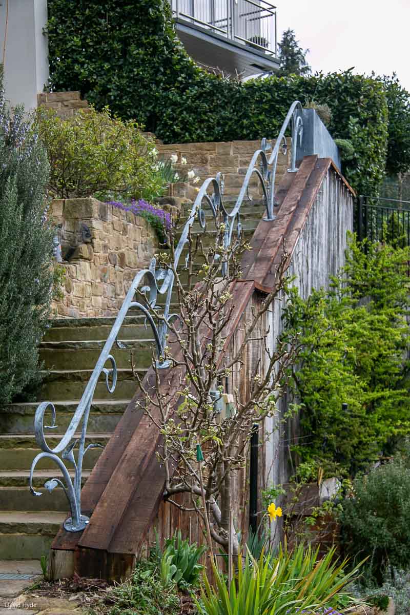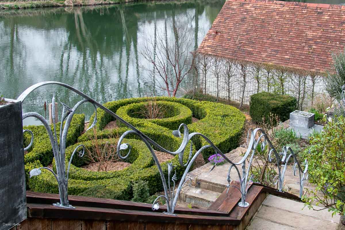 Only a single straight line was used to create these sculptural railings and handrail for a garden situated on the banks of the River Thames.