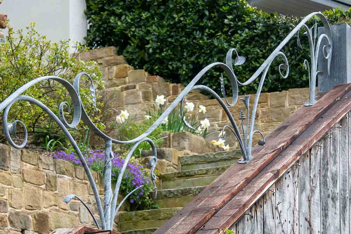 The organic leaves and shapes that form the railings are all hand forged to give them life, expression and vitality. The finish is aged and weathered galvanised steel.
