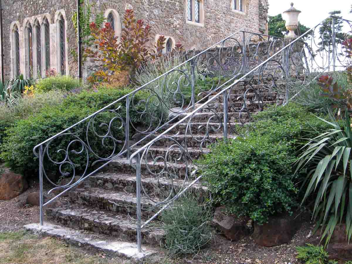 that prevents rust and has tones and texture that complement the stonework surrounding the railings.