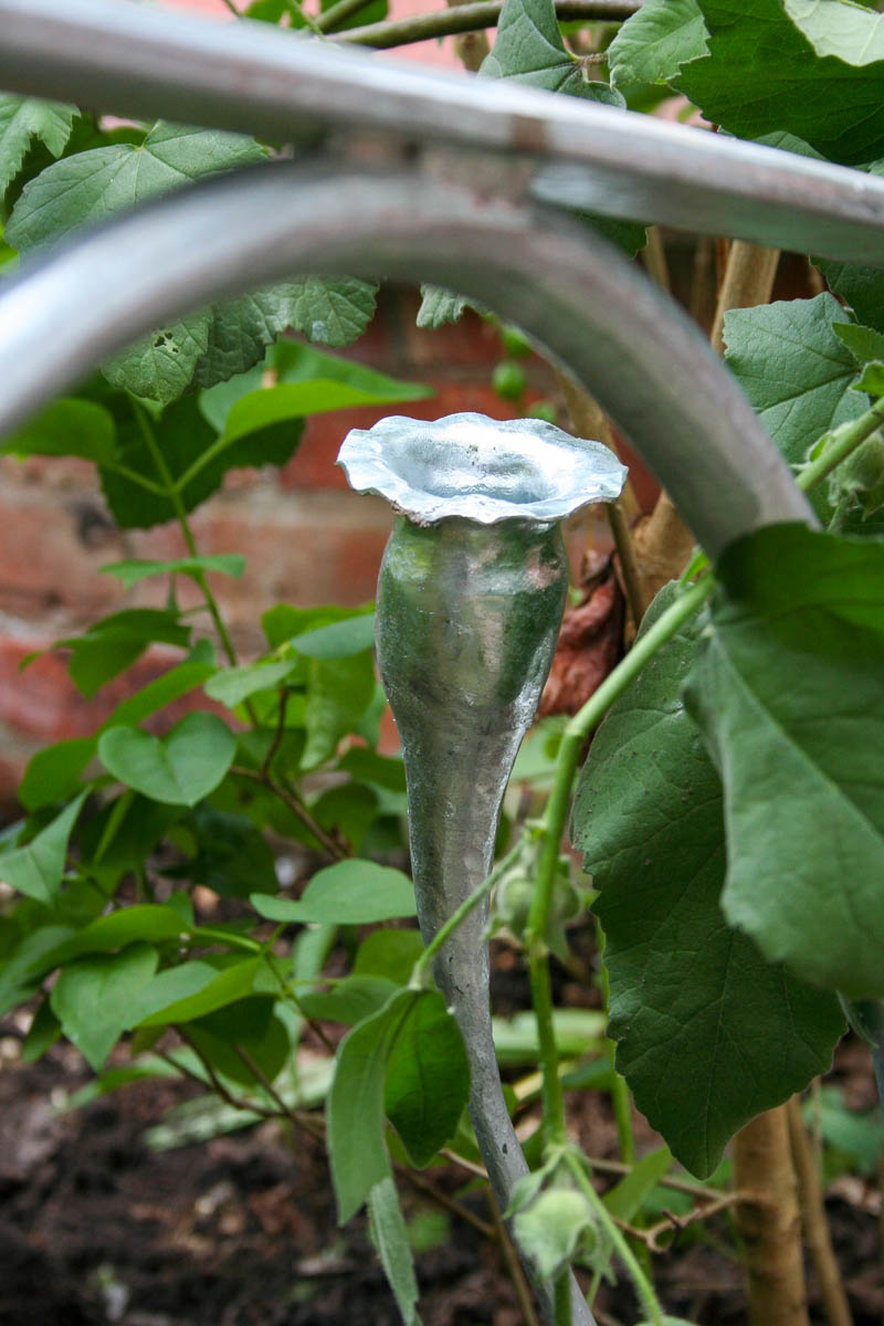 Rather than using conventional support posts for the railings, clusters of flowers, stems, leaves and tendrils are used to support the handrail ... which looks as though it is still continuing to grow over