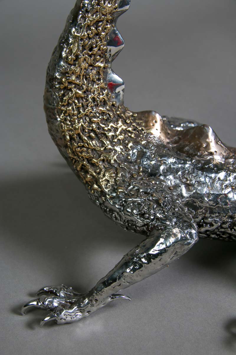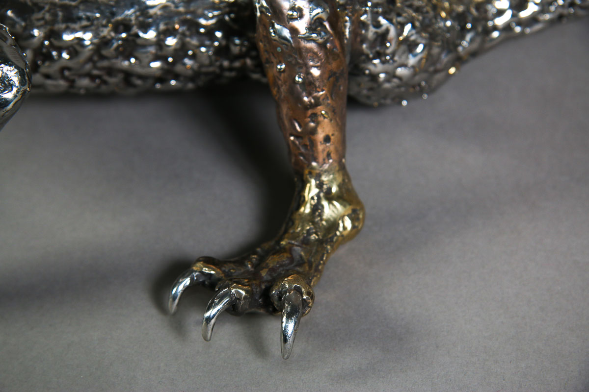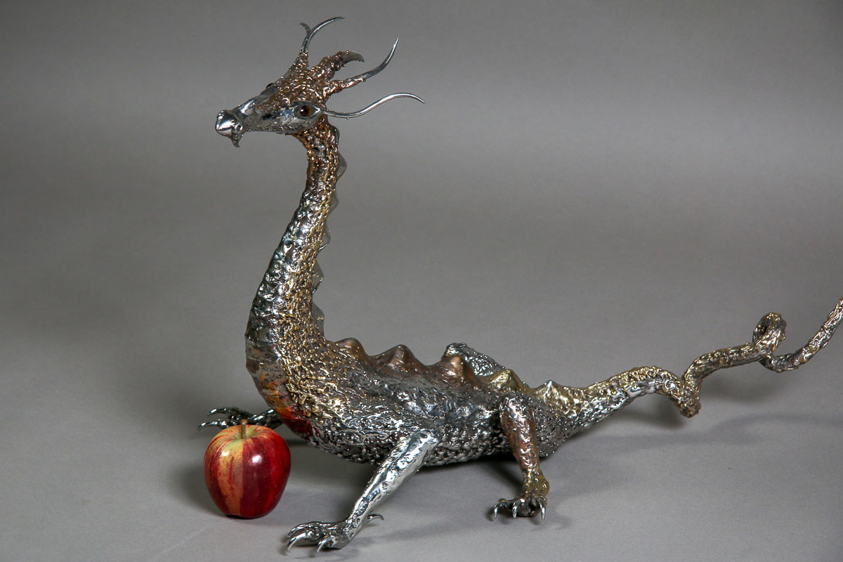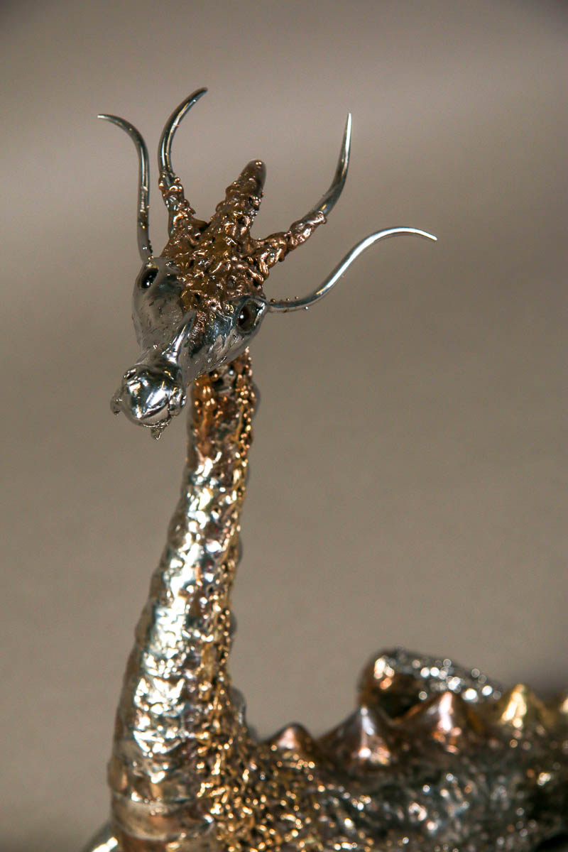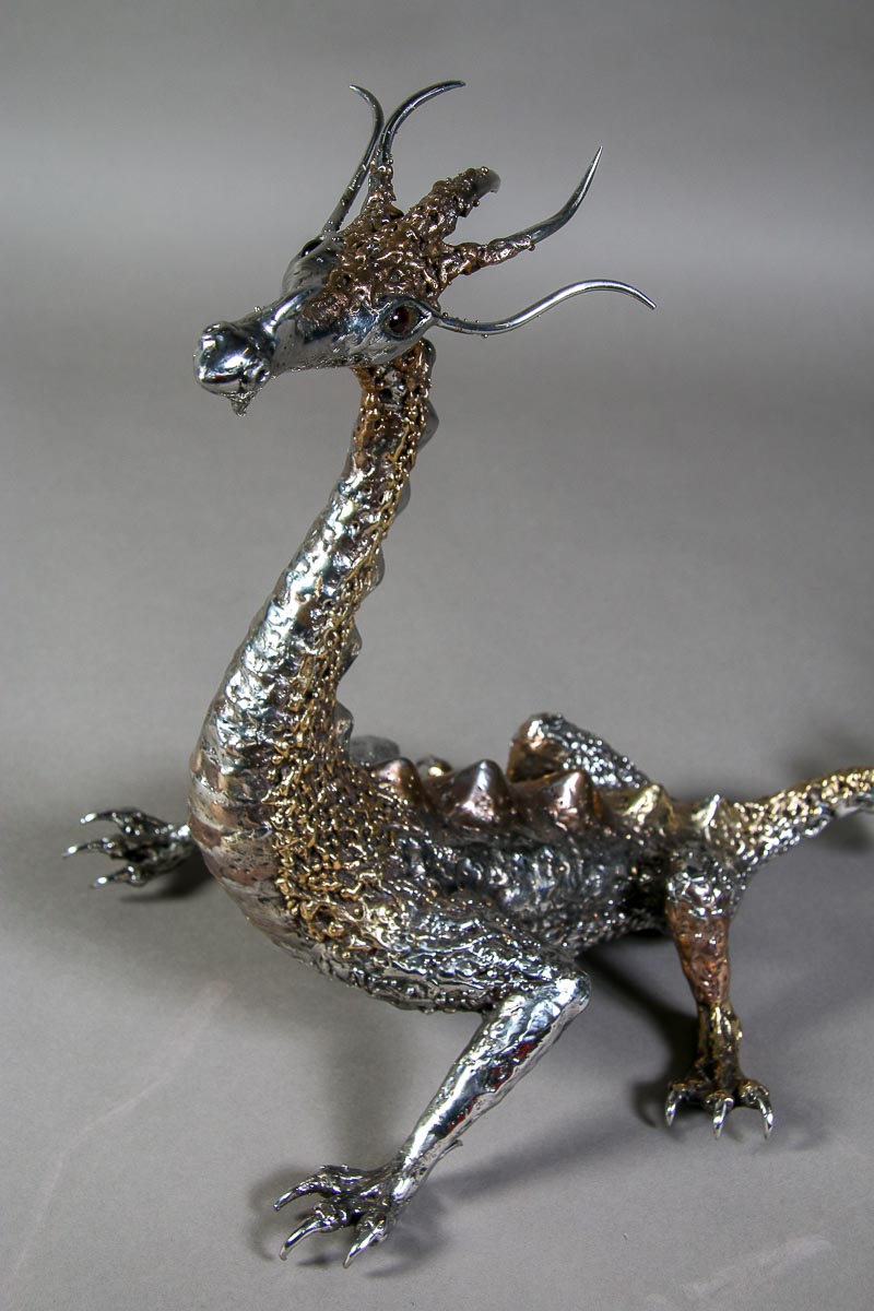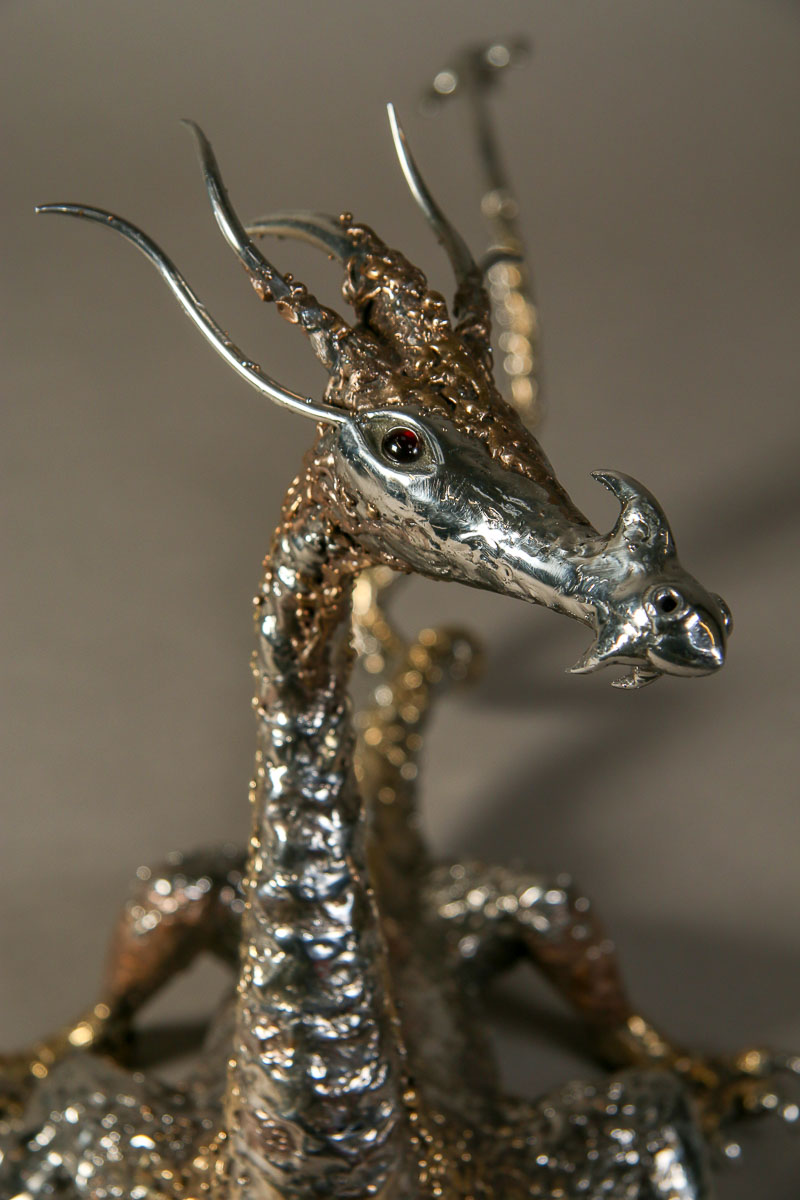 variegated palette of bronzes, silvers and golds. The tones and textures of the metals were enhanced by the dragon's deep and lustrous polish.
