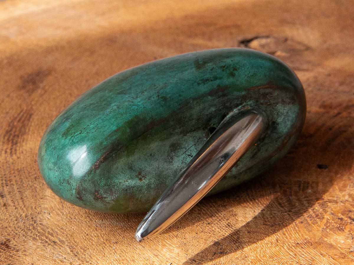 The traditional craft of cire perdue replaces the wax with bronze whilst the root is still in place to create a blended metal sculpture.