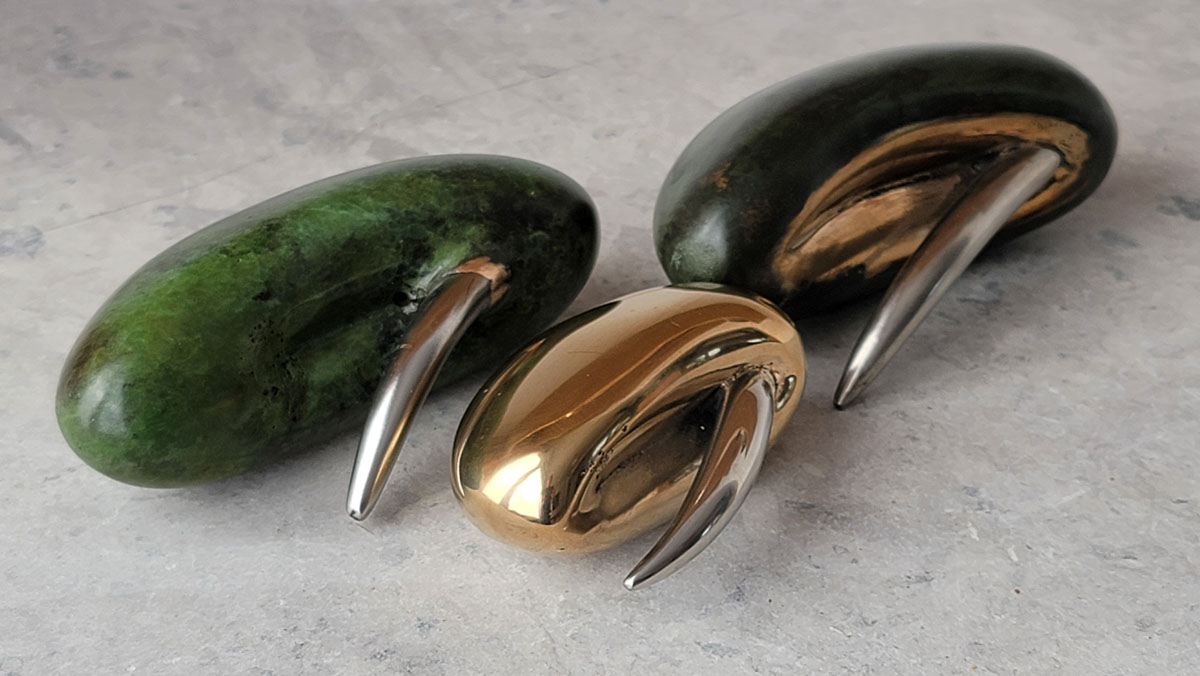 This collection of germinating seeds forms the beginning of an evolving series of mixed metal sculptures that are still a work in progress.