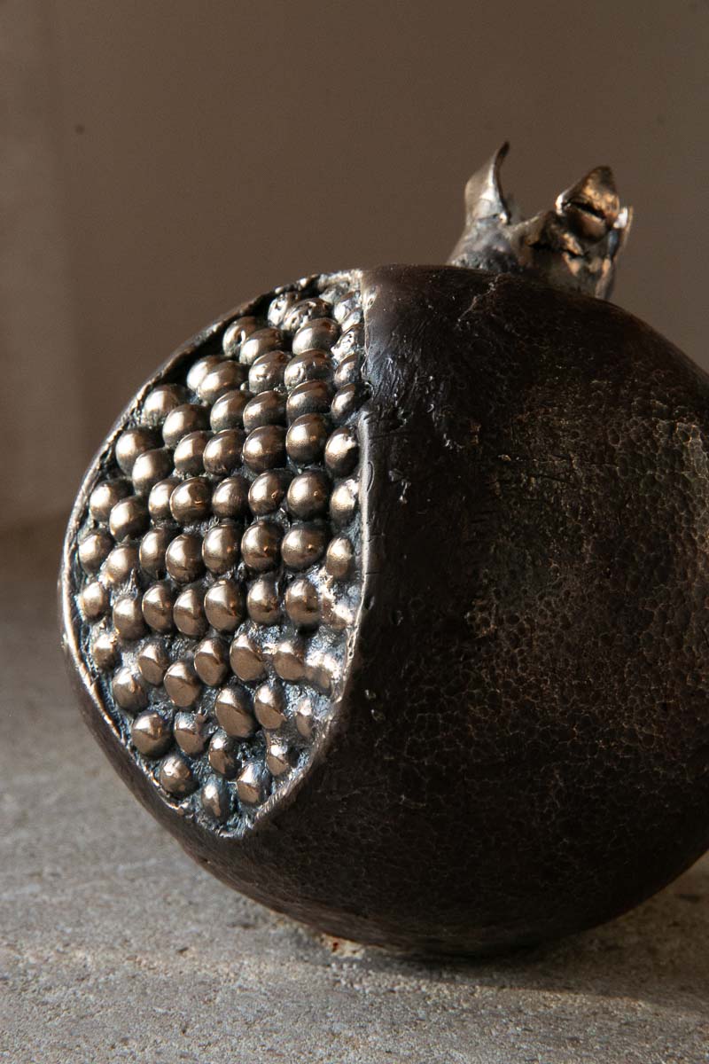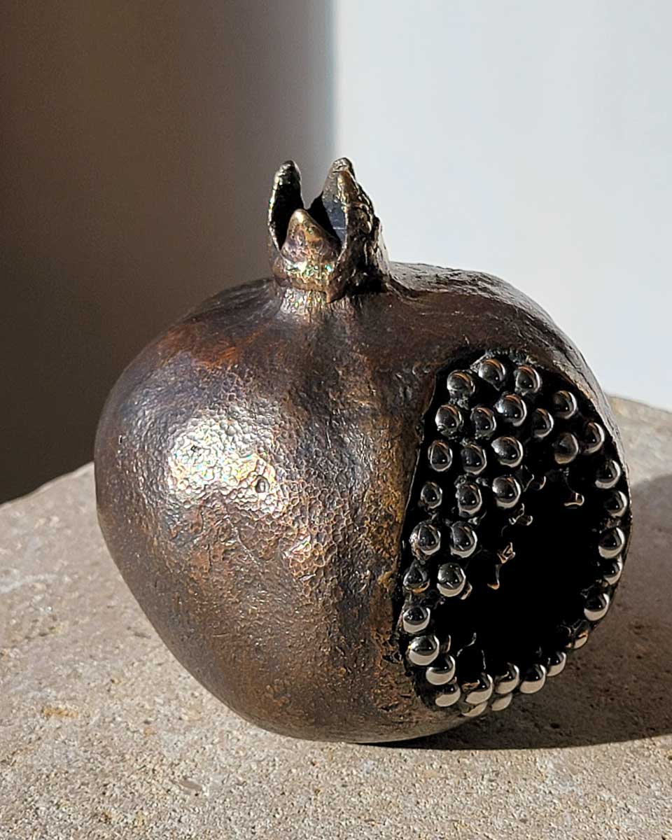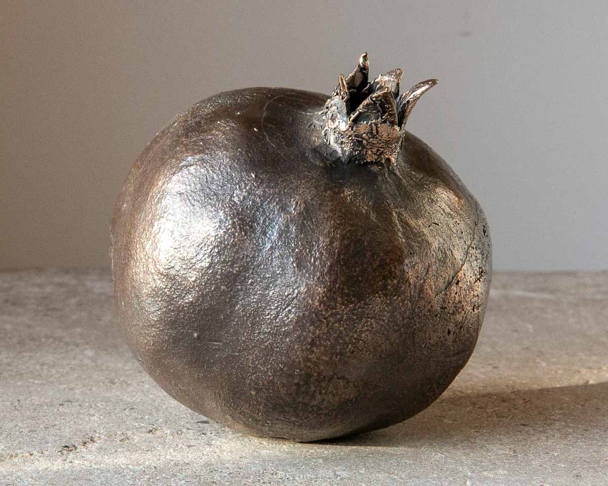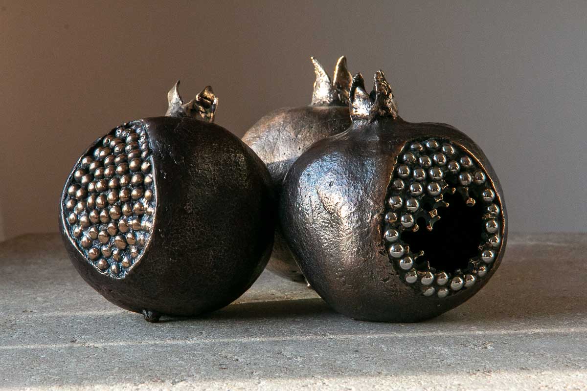 David uses a proprietary version of traditional cire perdue (lost wax) to cast life-like bronze pomegranates.